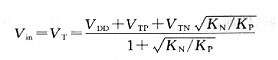 邏輯閾值電壓由于邏輯閾值電壓是式(10 1)中的-IDS與式(10 2)中的IDS相等時(shí)的電壓,所以應(yīng)用這個(gè)關(guān)系能夠求得Vin:假如KN=Kp,即KN KP=1,經(jīng)